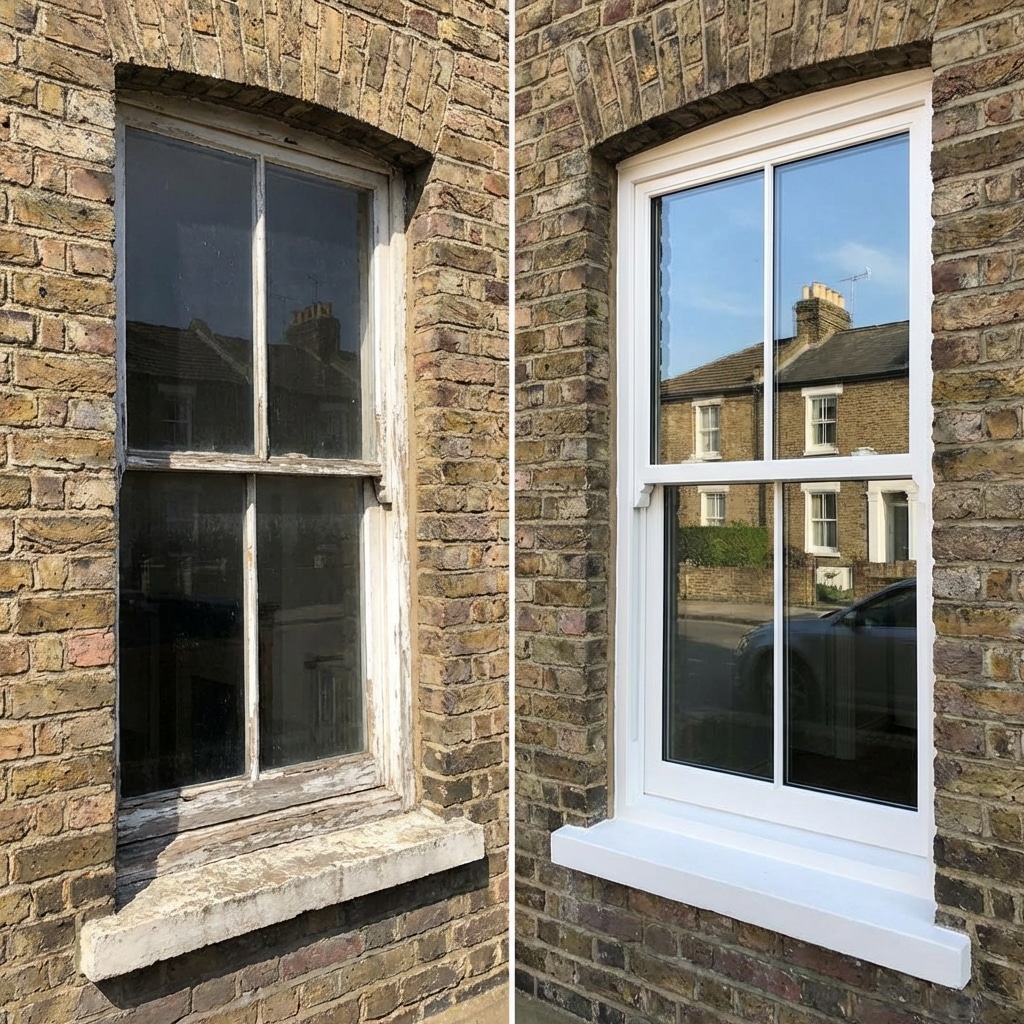 Traditional craftsmanship for period properties across London. Sash windows, timber doors and heritage joinery — repaired properly, built to last another century.